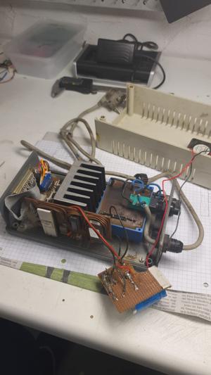 - Etching a PCB was too much effort in case of a problem. So the PCB was done with a holeboard and some manually soldered cables.